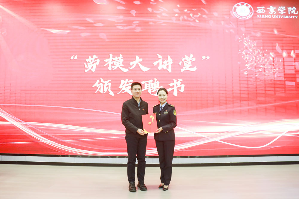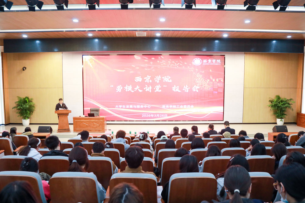 西京网讯 3月26日下午,西京学院第二十一期“劳模大讲堂”在工程舫学术报告厅举行。本期讲堂特邀陕西省劳动模范、西渭分公司灞桥站站长助理、兵马俑专线党支部副书记党丽娜,作题为《红亭匠造——用青春微光点亮交通为民之路》的专题报告。报告会由副校长程永清主持,陕西省教科文卫体工会副主席夏明文、西京学院工会委员会主席师娟娟、商学院院长秦效宏、商学院党委书记赵文杰出席,300余名学生代表参加。