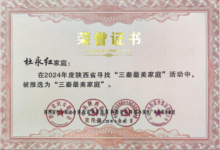 不久前,2024年“三秦最美家庭”评选结果揭晓,我校杜永红教授家庭获评。