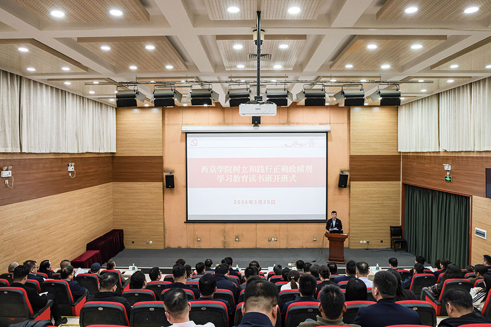西京网讯  3月29日下午,西京学院党委举办树立和践行正确政绩观学习教育读书班开班仪式。此次读书班主要任务是深入学习贯彻习近平总书记关于树立和践行正确政绩观的重要论述,深刻理解“政绩为谁而树、树什么样的政绩、靠什么树政绩”的问题,引导广大党员干部以正确政绩观真抓实干,在新征程上书写无愧于党、无愧于人民、无愧于时代的优异答卷。