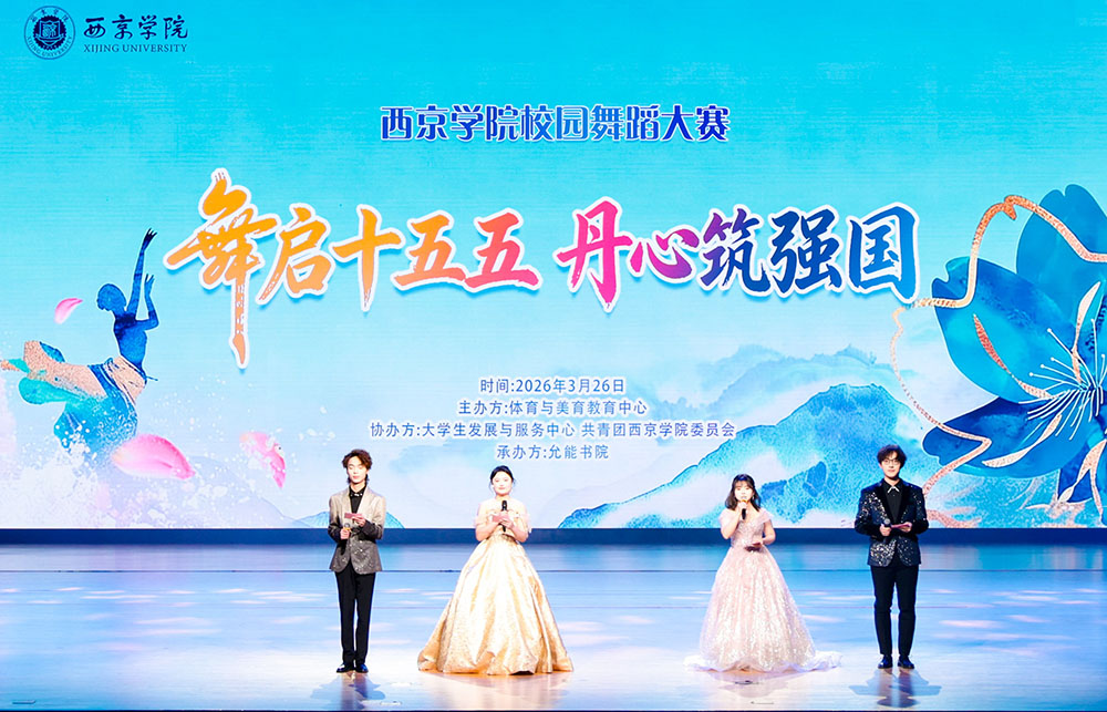 西京网讯 3月26日晚,西京学院“舞启十五五、丹心筑强国”校园舞蹈大赛举行。大赛由体育与美育教育中心、团委、大学生发展与服务中心联合主办,允能书院承办,旨在以舞蹈为载体厚植青年爱国情怀,引导学子将个人成长融入国家发展大局,展现新时代青年昂扬风貌。