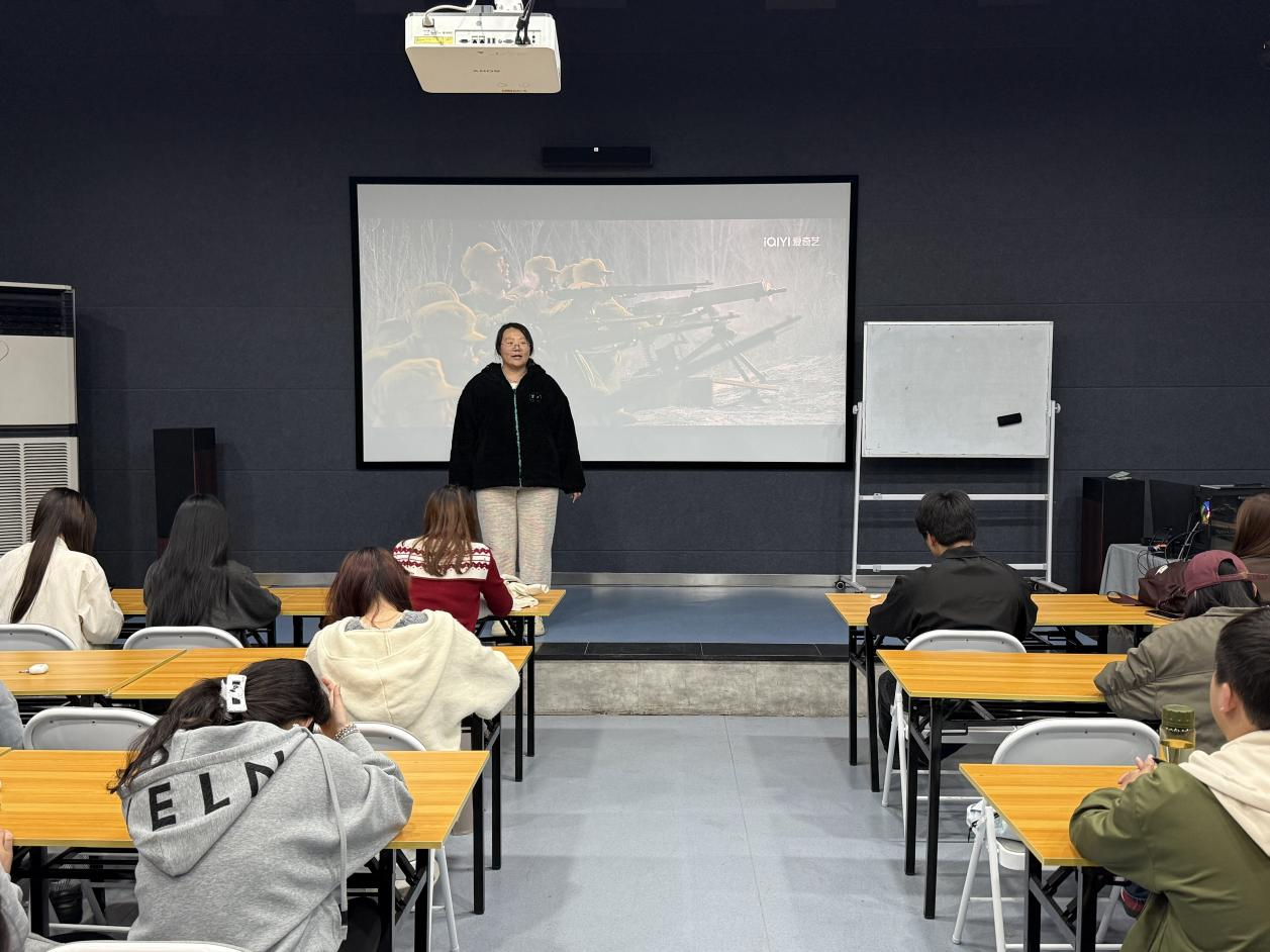 观影结束后,两位学生代表结合自身身份与专业特色,围绕影片感悟依次发言,分享所思所感,传递青春心声。发展对象陈雨妙分享道:“作为一名传媒专业的学生,《长津湖》让我深刻意识到,舆论阵地同样是没有硝烟的战场。影片中志愿军战士用生命守护家国,而我们传媒人则要用笔和镜头守护真相、传递主流声音,让英雄精神在新时代持续发光,牢牢把握属于我们的舆论阵地。”