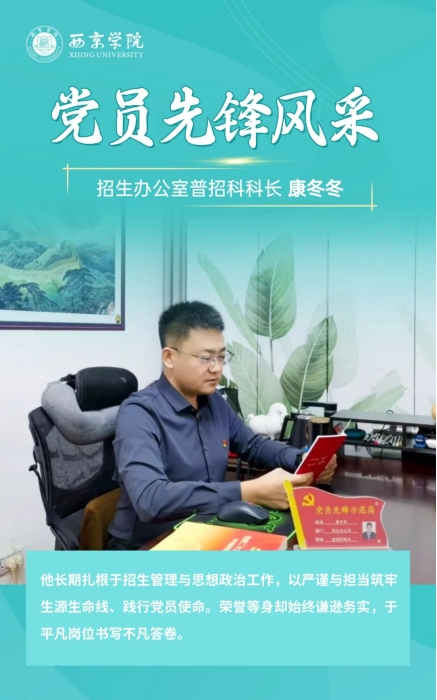 2016年起,康冬冬同志开始兼职从事思想政治工作,现担任中共西京学院机关委员会纪检委员。面对纪检工作的严肃性与复杂性,他迅速转变角色、主动钻研业务,系统学习《中国共产党纪律处分条例》《中国共产党廉洁自律准则》等党内法规,筑牢党风廉政建设底线,推动机关党建与业务工作深度融合。
