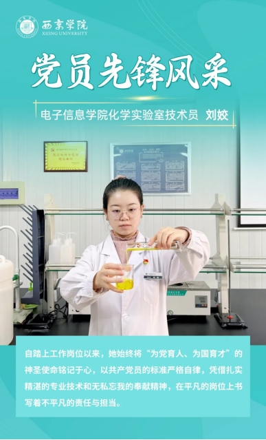 在刘姣同志的悉心指导和不懈努力下,她指导的学生在竞赛中获得省级一等奖1项、省级三等奖3项。她所管理的专业综合实验获批西京学院“党员先锋示范岗三级建设单位”。凭借突出的工作表现,刘姣先后荣获 “党员先锋示范岗”“实验室管理先进工作者”“优秀安全管理员”等多项荣誉称号。在科研领域,她同样成绩斐然,潜心钻研实验,助力多个科研项目取得重要阶段性成果。作为第一作者,她带领学生发表SCI及CSCD论文3篇,授权国家发明专利1项;参与陕西省教育厅项目2项、陕西省科技厅项目4项,并主持校科研基金2项。