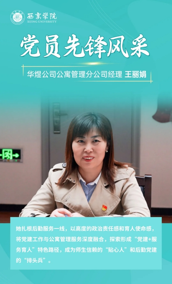 作为一名有着24年党龄的老党员,王丽娟始终以身作则、率先垂范。她坚持每周深入学生宿舍,年均走访谈话300余次,及时解决学生急难愁盼问题;她推动建立“党员联系宿舍”制度,组织党员与困难学生结对帮扶,传递组织温暖。个人先后荣获“陕西省高校公寓服务标兵”“校级思想政治工作先进个人”等荣誉,用实际行动诠释了“一个党员就是一面旗帜”的深刻内涵。