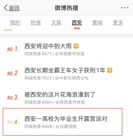 毕业典礼宣传位列微博西安热搜第四名
