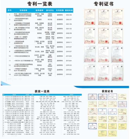实验室教学团队以赛促学、以研育人,近三年在学科竞赛中斩获国家级奖项6项(含全国大学生化工设计竞赛国家级二等奖1项、三等奖2项)、省级特等奖2项(陕西省大学生化工设计竞赛)、西北赛区二等奖2项(全国大学生化工实验大赛)、省级一等奖4项(含陕西省化学实验邀请赛一等奖1项、“互联网+”大赛银奖4项),累计获得校级以上竞赛奖项 24项。同时,团队深耕教学改革与科研创新,立项校级教改项目2项,发表SCI论文30余篇,授权发明专利11项,形成“竞赛引领、科研反哺、教学相长”的育人格局。