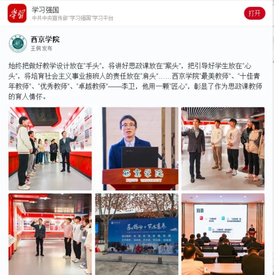 在教师荣誉方面,获评“十佳青年教师”2人,“最美教师”4人,“优秀教师”6人,入选“卓越教师”2人。此外,教研部成员积极在省内外理论研讨会上提交论文、交流发言,其研究成果与教学经验在陕西卫视、陕西日报、陕西省教育厅、学习强国等媒体和平台上被广泛宣传报道,产生了广泛的社会影响,进一步提升了教研部的知名度与影响力。