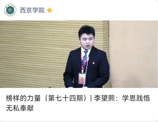 近三年来,新闻中心累计推出“西京师话”“科学西京人”“西京学说”“榜样的力量”等品牌栏目,挖掘报道350余名师生典型,打造了具有本校特色的网络育人生态。