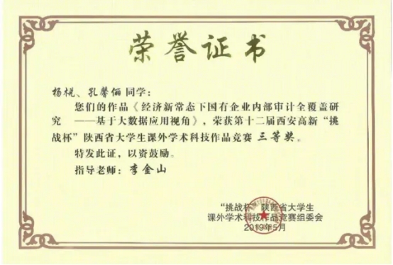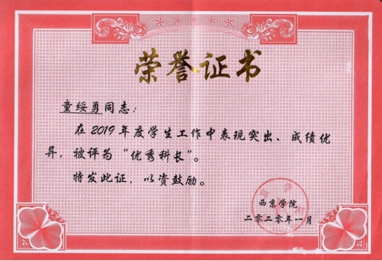 2019年 获西京学院“优秀科长”称号;