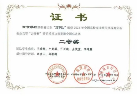2023年 获“2022年西京学院支持共青团工作好院长”称号。