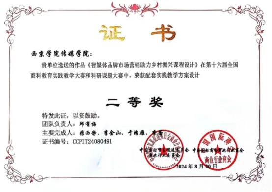 他以“创”的精神深耕课堂思政建设。将《应用文写作》与党建理论教育有机融合,打造“传媒党建微课堂”特色品牌。以红色经典文献为教学范本,剖析革命先辈文稿中的家国情怀,引导学生在学习专业知识的同时感悟红色精神。在教学实践中,他以习近平总书记重要讲话为范例,提升学生的语言表达能力与思想深度。2023年6月,作为主要完成人,他参与的《运营管理》课程实践作品在第十五届全国商科教育实践教学大赛中荣获二等奖,用创新教学成果筑牢育人阵地。