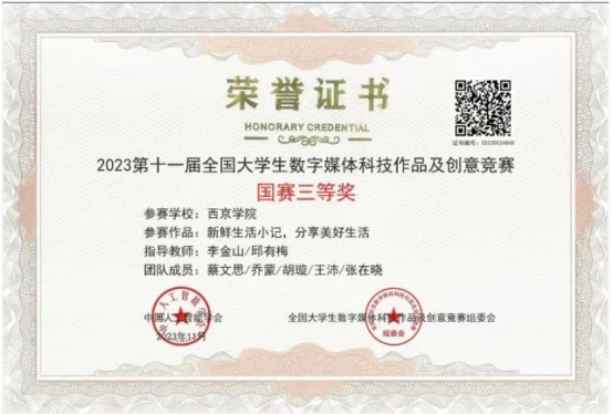 2020年 获西京学院“优秀科长”称号;