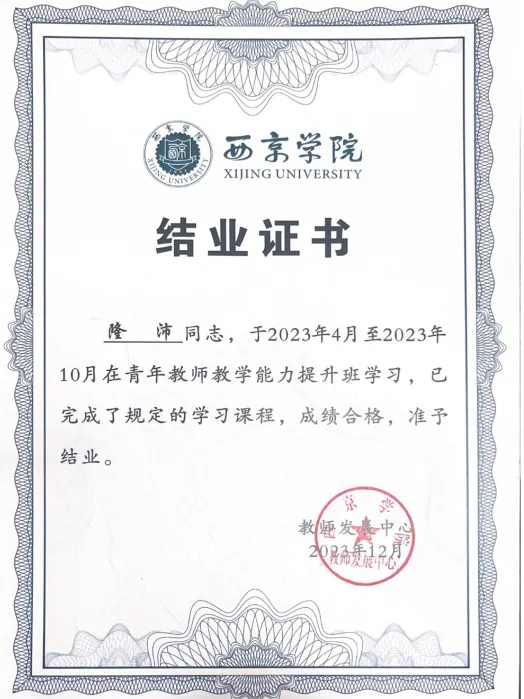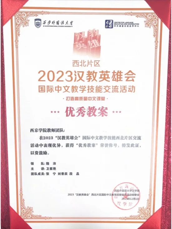 “要给学生一杯水,自己要有一桶水”。他明白高校教师的重要职责,注重从多个方面加强自身能力的提升。通过观摩优秀教师示范课,参加青年教师教学能力提升班,提升自身的教学能力。参加“一带一路”倡议下国际中文教育高质量发展:方法、工具与实践研讨会,了解学科发展最新动态。先后以成员和领队身份参加2022、2023西北片区汉教英雄会国际中文教学技能交流活动,团队分别获得“最佳课件”和“优秀教案”荣誉称号。2022.8-2024.7担任汉语国际教育B2202班班主任,所带班级获2022-2023学年先进班集体二等奖。