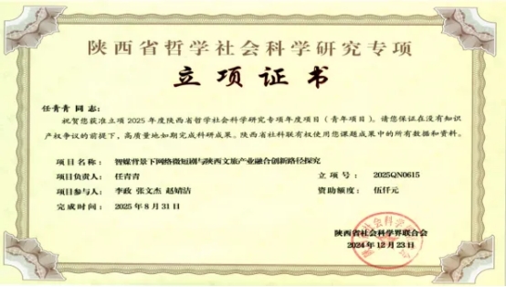 在学术研究领域,任青青以融合的视野聚焦智能传播前沿,将理论研究与行业实践紧密结合,向着传媒学术研究的远方不断迈进。曾主持陕西省哲学社会科学专项、教育部产学合作协同育人项目等6项课题。在《传媒》《青年记者》等核心期刊发表《互动仪式链视域下文化类综艺节目的守正与创新》《冬奥会vlog平民化叙事模式创新及策略》等论文,引发学界广泛关注。2024年完成重庆大学“网络与新媒体讲习班”培训,以中国科技新闻学会数据新闻专委会理事身份参与广西大学“AIGC与大模型视域下新闻传播研究”专委会培训,并入选西安交通大学首届全国大学生AIGC微短剧大赛指导教师研习营。2025年,受邀出席第一届中国技术市场协会人工智能与传播学术研讨会,在“社会媒体与智能交互”分论坛发表专题报告,与学界业界共探技术驱动下的传播范式革新路径。她的研究成果,正是学术与实践深度融合,助力传媒行业行稳致远的生动体现。