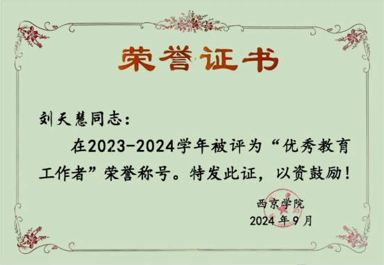 以“四有”好老师标准严格要求自己,贯彻西京学院“三五规范”,用心对待每一堂课,多次获评优秀教师、课堂教学比赛等荣誉称号。担任电子信息工程2301班班主任,年均教学工作量达200多学时,认真备课、授课、反思,认真对待每位学生,不仅传授知识,更注重引导学生思想,努力成为学生成长路上的引路人。在教学改革方面,积极探索,获批6项校级项目,发表6篇教改论文,不断创新教学方法,提升教学质量。