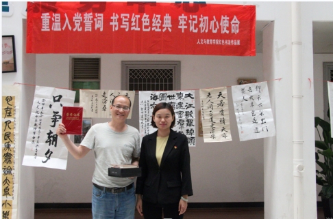 在党建与业务融合实践中,冯祎洁积极探索“书院+支部”协同育人模式。她将《少年行四首》《长征七律》等红色经典融入教学,所带学生创作的红色主题作品获得国家、省部级奖项10余项。冯祎洁始终牢记党员示范岗的责任担当,将“亮身份、树标杆”贯穿教育教学全过程,主导制定《万钧书院书法课程考核标准》,将工匠精神、艺术素养纳入学生综合素质评价体系,相关经验被全国高校思想政治工作网作为典型案例推广。