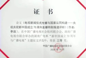 3.论文《电视新闻仪式传播与国家认同建构——以央视庆祝新中国成立70周年直播特别报道为例》荣获中国广播电视社会组织联合会主题征文全国“三等奖”。