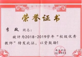 1.2015年9月、2017年9月、2019年9月、2021年9月,4次被评为校级“优秀教师”。