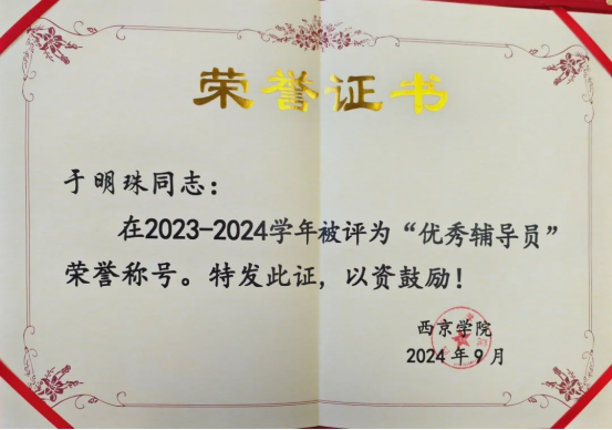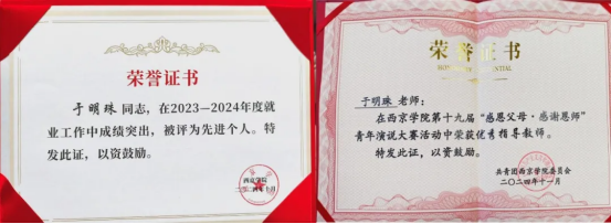 2024年11月在第十九届“感谢父母·感谢恩师”青年演说大赛活动中荣获“优秀指导教师”。